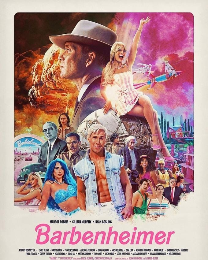 For those of you confused by this reference, Barbenheimer was a phenomenon where two highly viewed movies, Barbie and Oppenheimer, were playing at the same time, causing movie goers to buy tickets for both and watch them back-to-back.